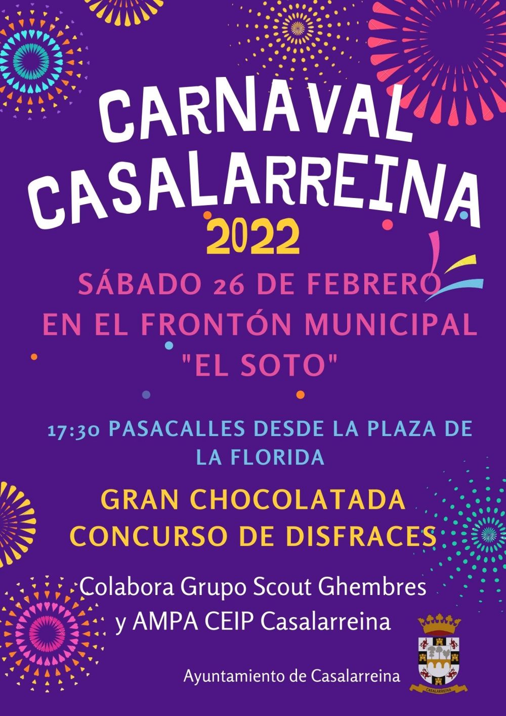 El sábado 26 de febrero de 2022 celebraremos la fiesta de Carnaval con un pasacalles por Casalarreina y después en el Polideportivo Municipal.
