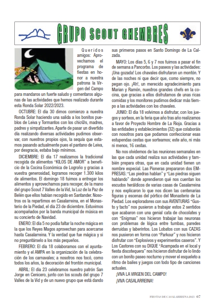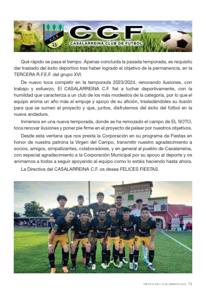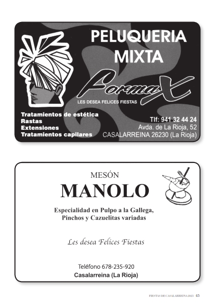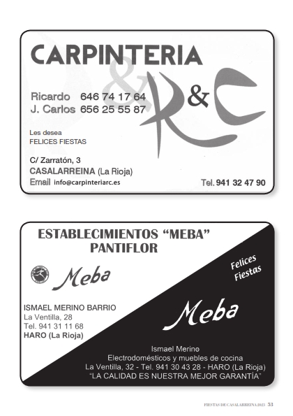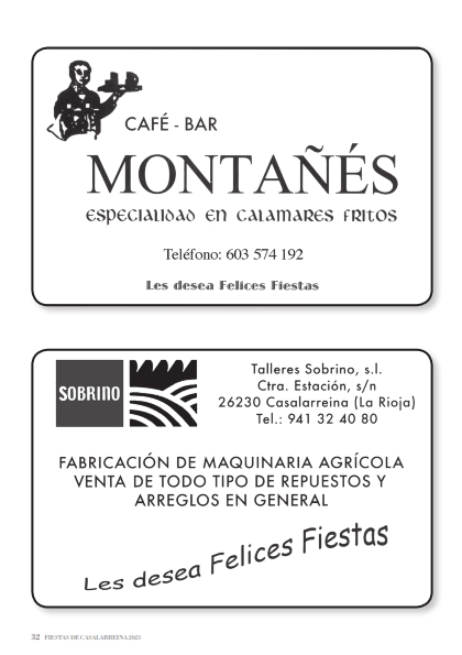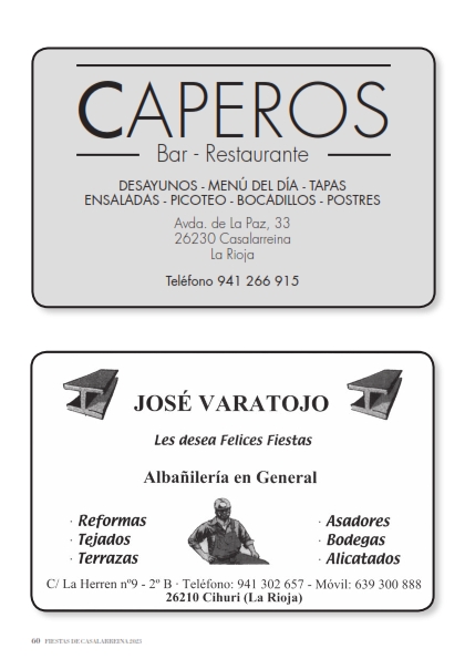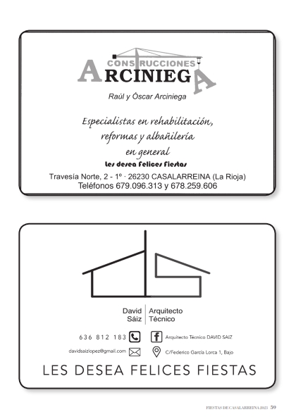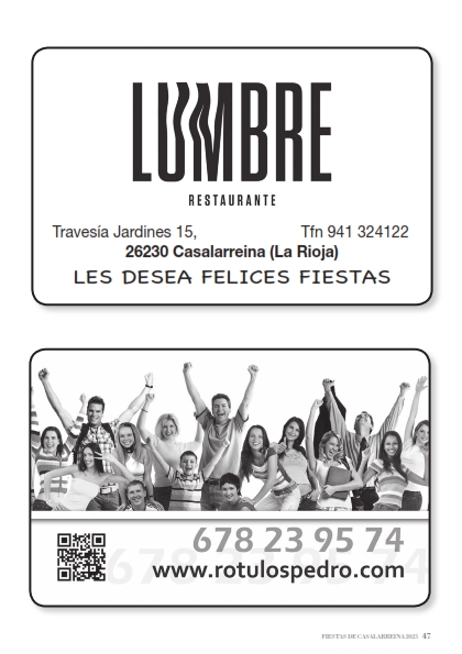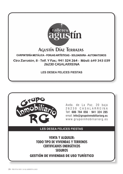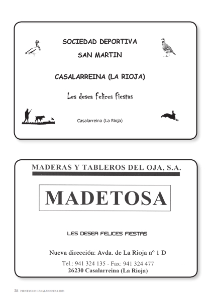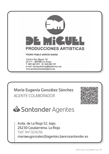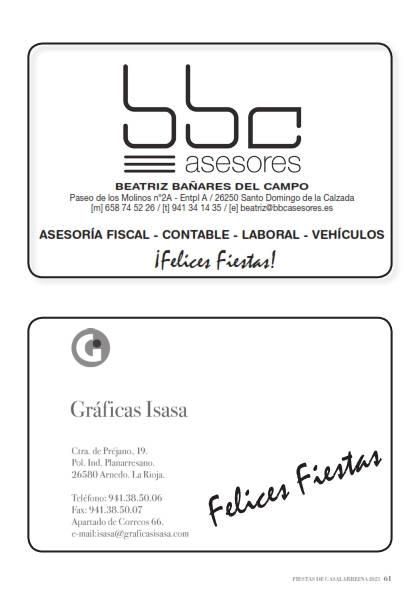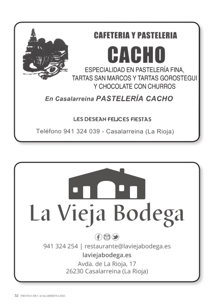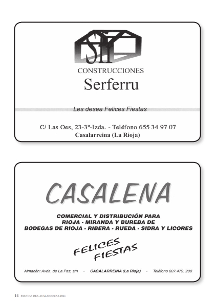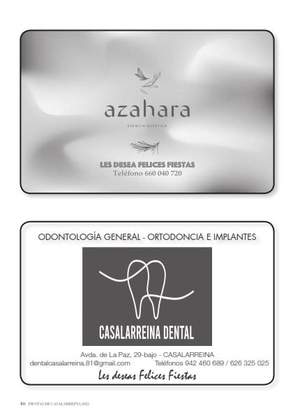Programa Oficial de Fiestas 2023 Publicación de la entrada:19 septiembre, 2023 Categoría de la entrada:General Etiquetas: casalarreina, FIESTAS ¿Te ha gustado? Compártelo Compartir este contenido Se abre en una nueva ventana Se abre en una nueva ventana Se abre en una nueva ventana Se abre en una nueva ventana También podría gustarte San Vitores 2022 24 agosto, 2022 Suplemento Fiestas de Casalarreina en La Rioja ;) 26 septiembre, 2019 Ludoteca de verano 2023 26 junio, 2023